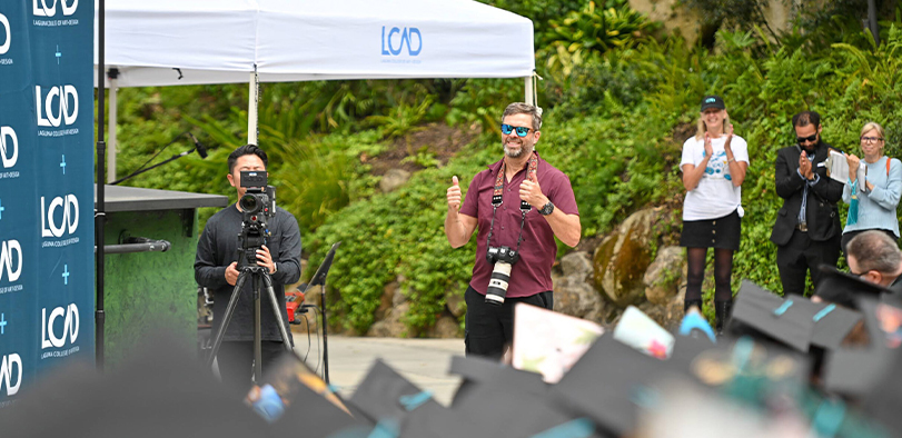 This year, we honor a very special individual for his 30 years of involvement with LCAD. This man, who many have called the invisible man because he’s the man behind the camera, has been a part of LCAD in every capacity. Starting as a student in the ’90s, then an alumni, a faculty member, a staff member, and an inspiring artist– he has served LCAD at every level.